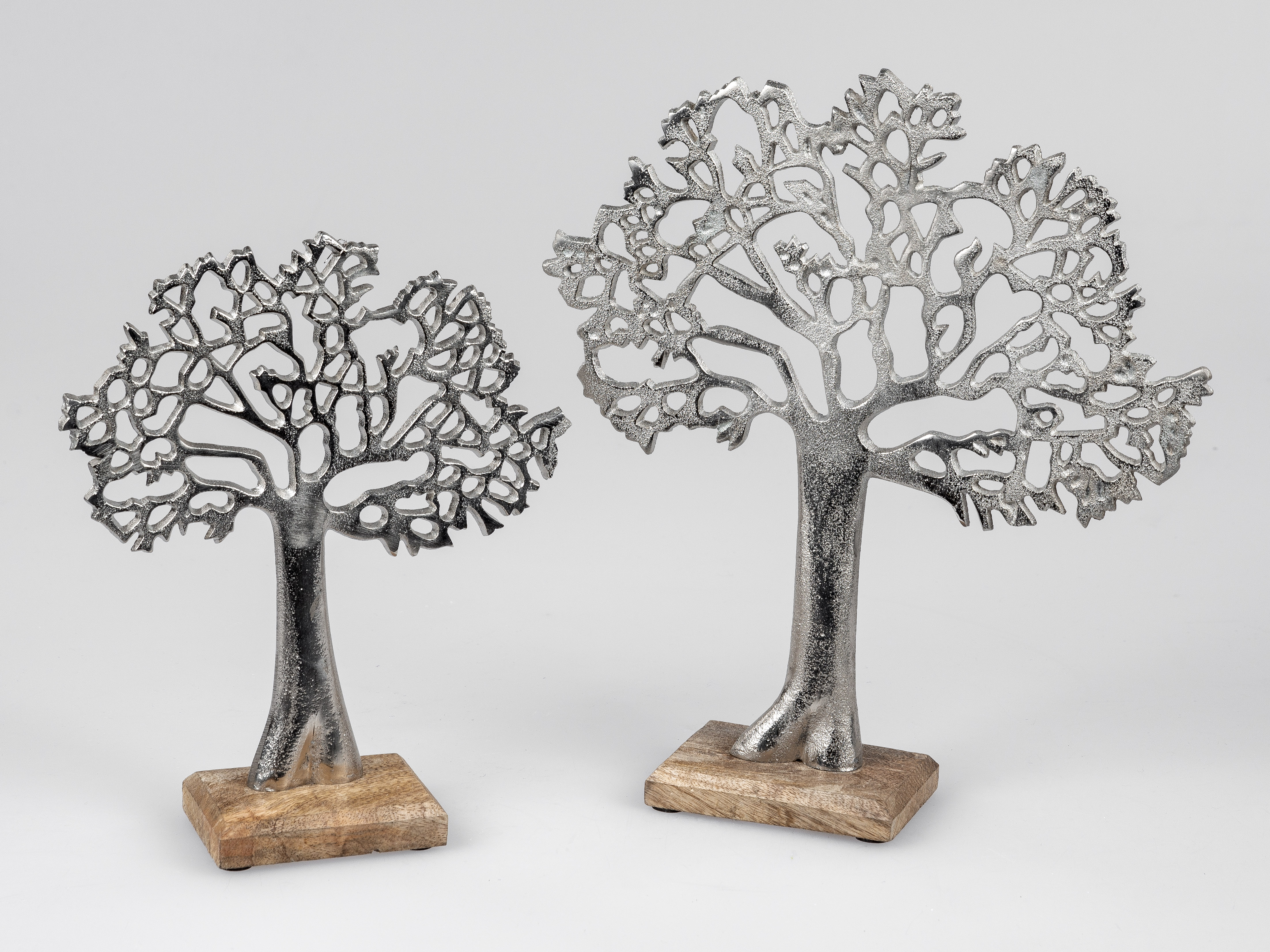 1 Lebens-Baum 23x27cm, 30x34cm oder 31x62cm aus Aluminium und massivem Mangoholz-Sockel