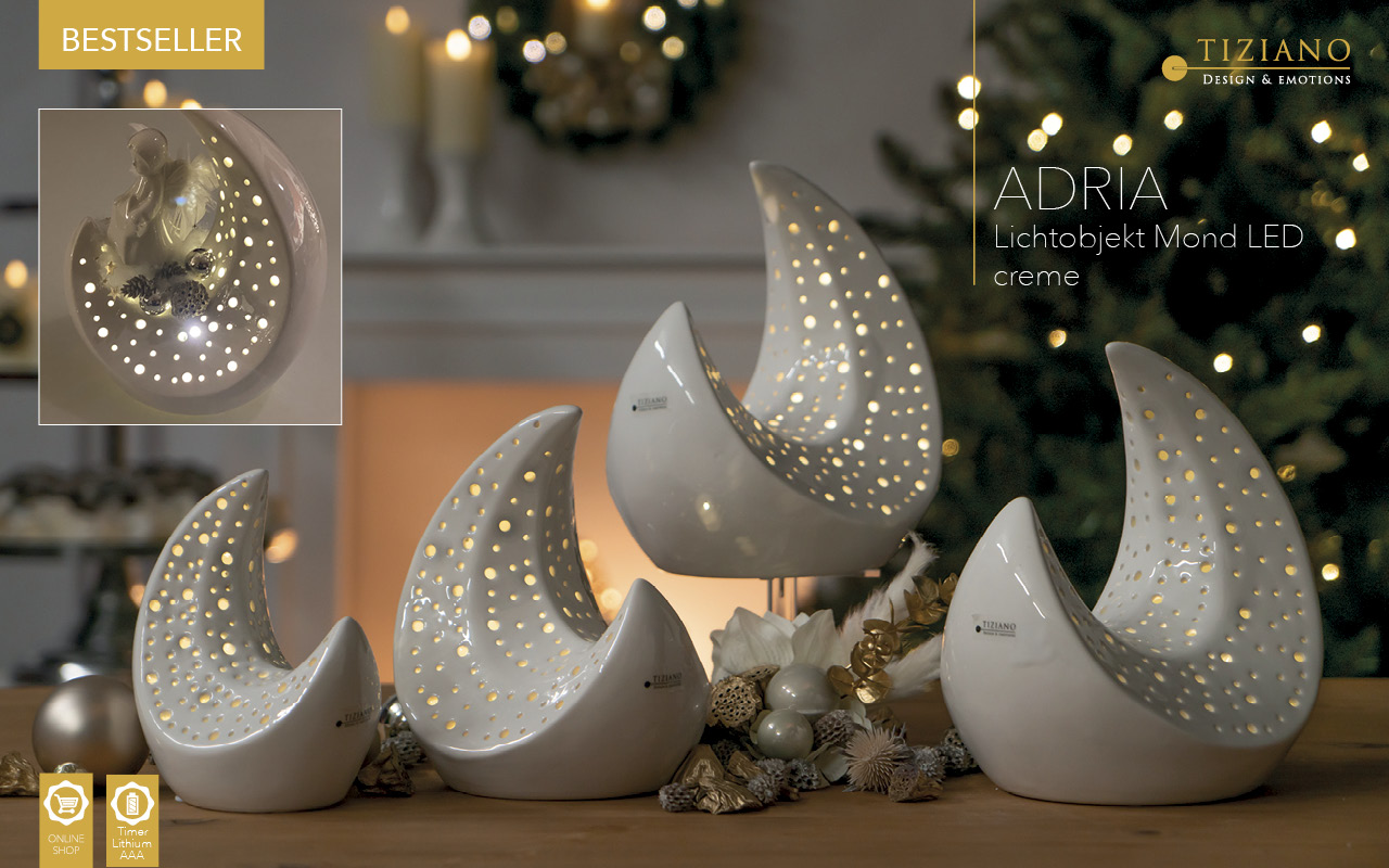 Deko Adria LED – cremefarben – Höhe: 15 cm, 17 cm, 21 cm oder 24 cm (Betrieb mit Batterien AAA, nicht im Lieferumfang enthalten)