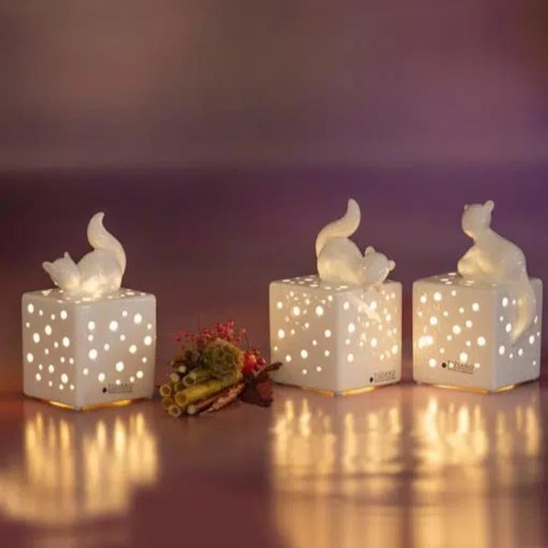 Padova eckig mit LED, 9 cm, mit Eichhörnchen Silvino, mit Timer (6h an/18h aus) − Höhe: 9 cm – 3 Varianten