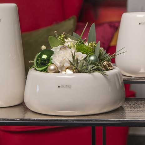 Die stilvollen und exklusiven Kollektionen von Tiziano bestechen in ihrer Gesamtheit durch ihr Design in den Formen und ihren harmonischen Silhouetten. Vielfache Kombinationsmöglichkeiten aus Figuren – Kübeln und Töpfen – Lampen – Schalen – Teelichtern und Vasen schaffen gestalterischen Raum für mehr Individualität. Setzen Sie mit Ihrem ausgewählten Designobjekten Ihr zu Hause liebevoll in Szene und erhalten so eine ganz besonderes Flair. Hergestellt in aufwendiger Handarbeit – jedes mit ganz eigenem Zauber.