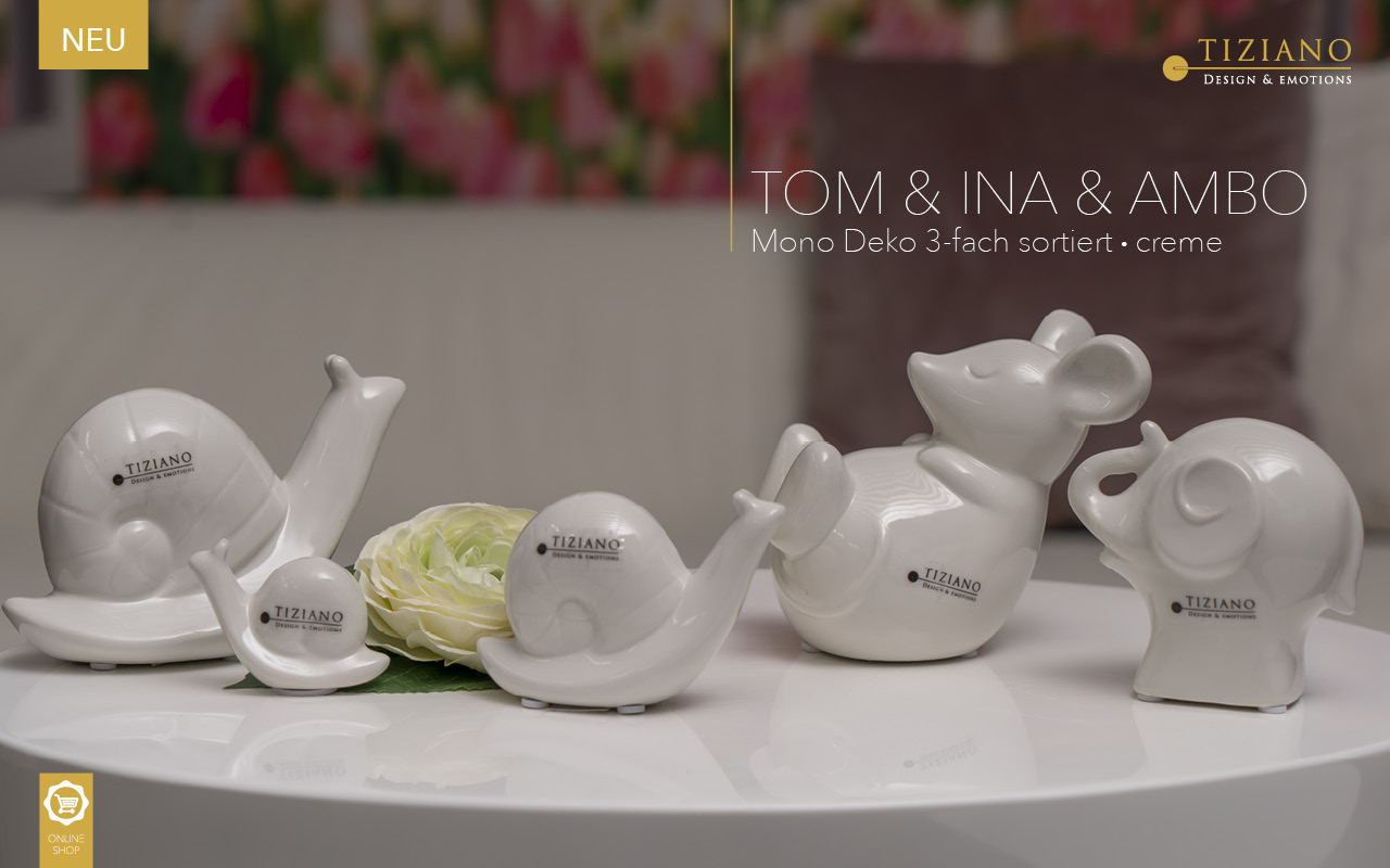 Die stilvollen und exklusiven Kollektionen von Tiziano bestechen in ihrer Gesamtheit durch ihr Design, ihre Formen und harmonische Silhouetten. Vielfache Kombinationsmöglichkeiten aus Figuren, Kübeln,Töpfen, Lampen, Schalen, Teelichtern und Vasen schaffen gestalterischen Raum für mehr Individualität. Setzen Sie mit ausgewählten Designobjekten Ihr zu Hause liebevoll in Szene und erhalten so ein ganz besonderes Flair. Die Designerstücke werden in aufwendiger Handarbeit hergestellt, so dass jedes seinen ganz eigenen Zauber inne hat.
