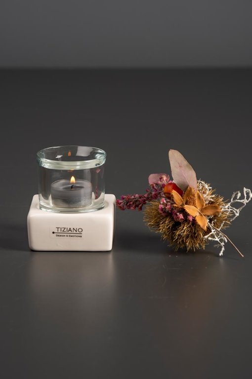 "Tiziano Windlicht Mantova weiß-creme mit Klarglas 790201"