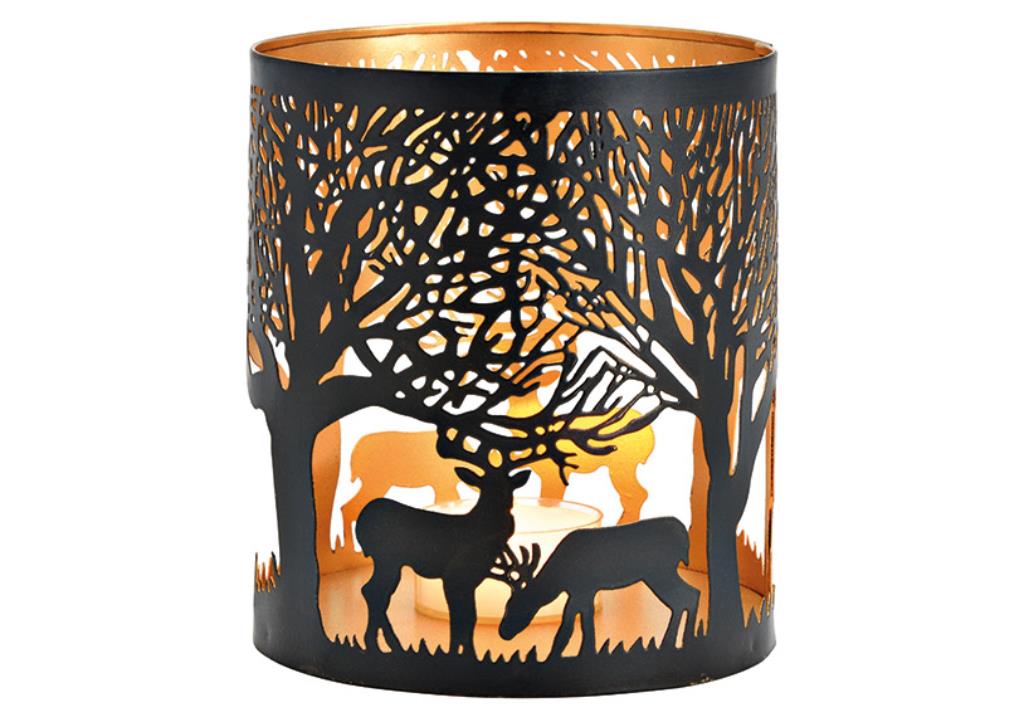 "WURM Windlicht Winterwald Dekor aus Metall Schwarz, gold 10034519"